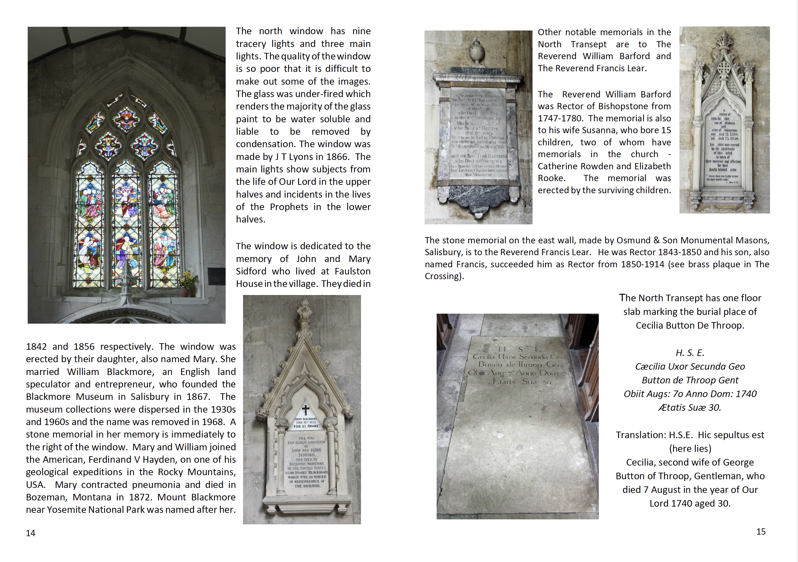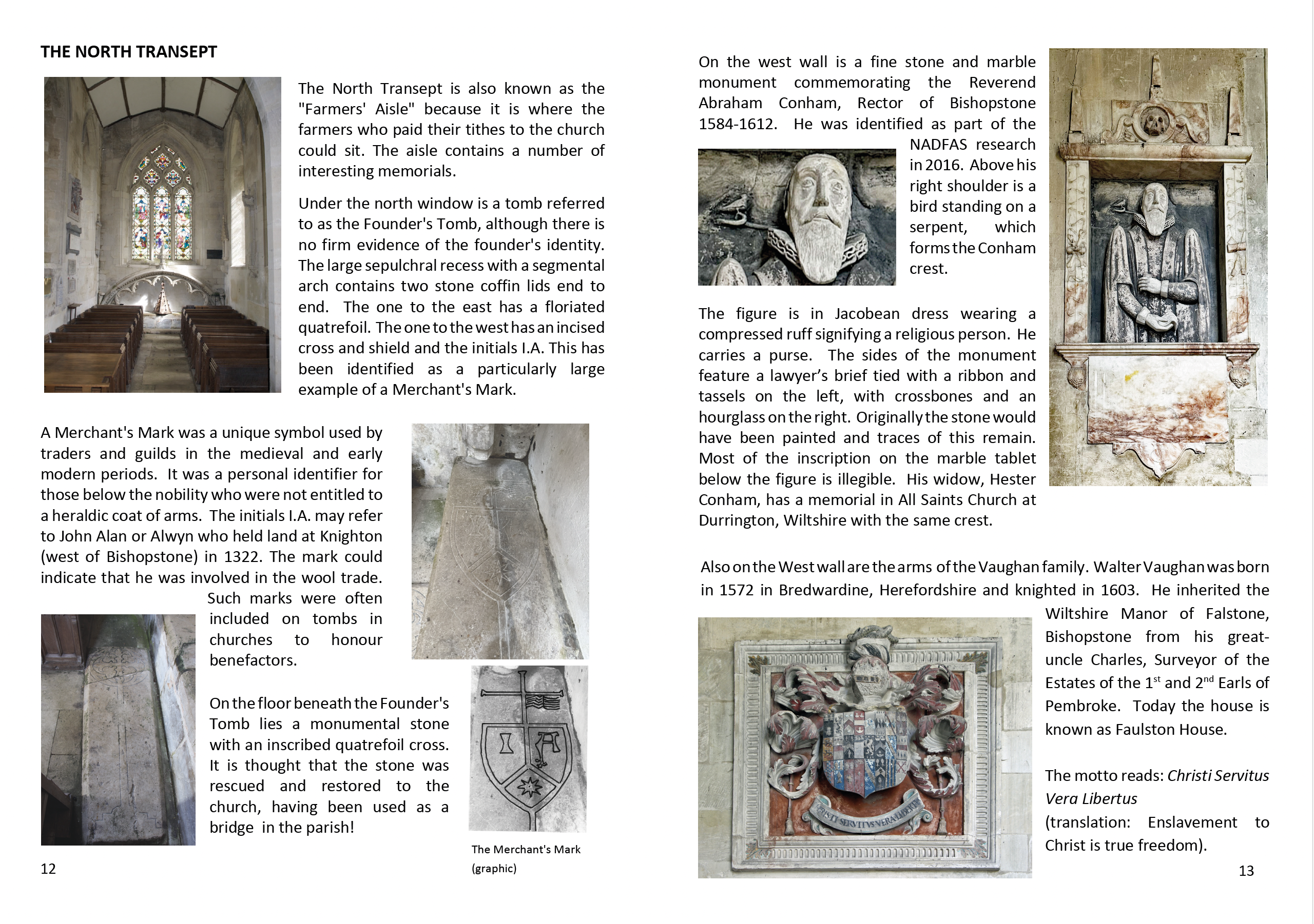 A new Guide Book to the church is being sold in aid of the Development Project (see Friend's Page). An extract below provides more information on the North Transept of the church.